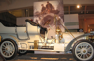 To write that Driving America is the end-all of automobile museum efforts, however, would be disingenuous, however. First, the exhibit suffers from a common shortcoming among those who put these car presentations together. Namely, there seems to be this need or urge to put all of one toys out on the table. Consequently, the exhibit ends up being choked with cars placed on every square foot of the floor, overwhelming the scene at the expensive of meaningful learning experiences. To be sure, the most historically significant cars are out there, including the 1924 Chrysler Touring Car and the Essex closed body design of the early 1920s. But some of the cars placed on the wings just clutter things up, and diffuse the main theme that should be the focus of the work. Secondly -- and I know that there is considerable debate on this point -- to isolate the cars behind barriers takes so much away from the potential learning experience. I know these cars are extremely valuable, but at the Audi Museum at Ingolsadt, Germany, for example, one can walk right up to the cars and even touch them -- and some of those cars, including several Rennwagens from the 1930s, are worth just as much as a Tucker 48, if not more.